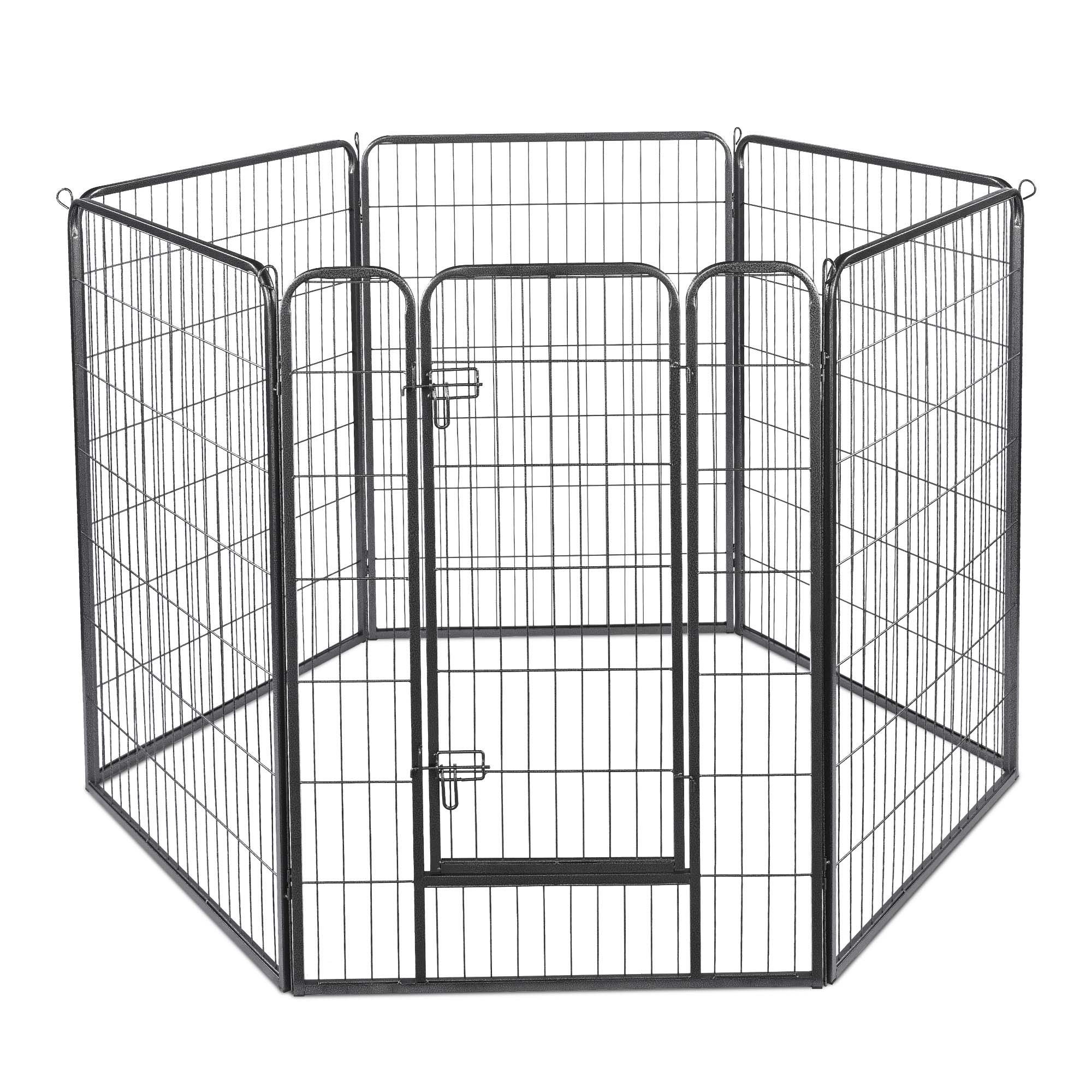 - Rust-Resistant & Sturdy Fence - 6 pieces 32"x45" Pet Playpen Panel is made of powder coated metal for great rust resistance, and keeping panel sleek and beautiful; 0.6"x0.6" square tube guarantees rigidity to withstand the weight of pet, ground stakes for firmly fixating the panels on the ground in outdoor space
